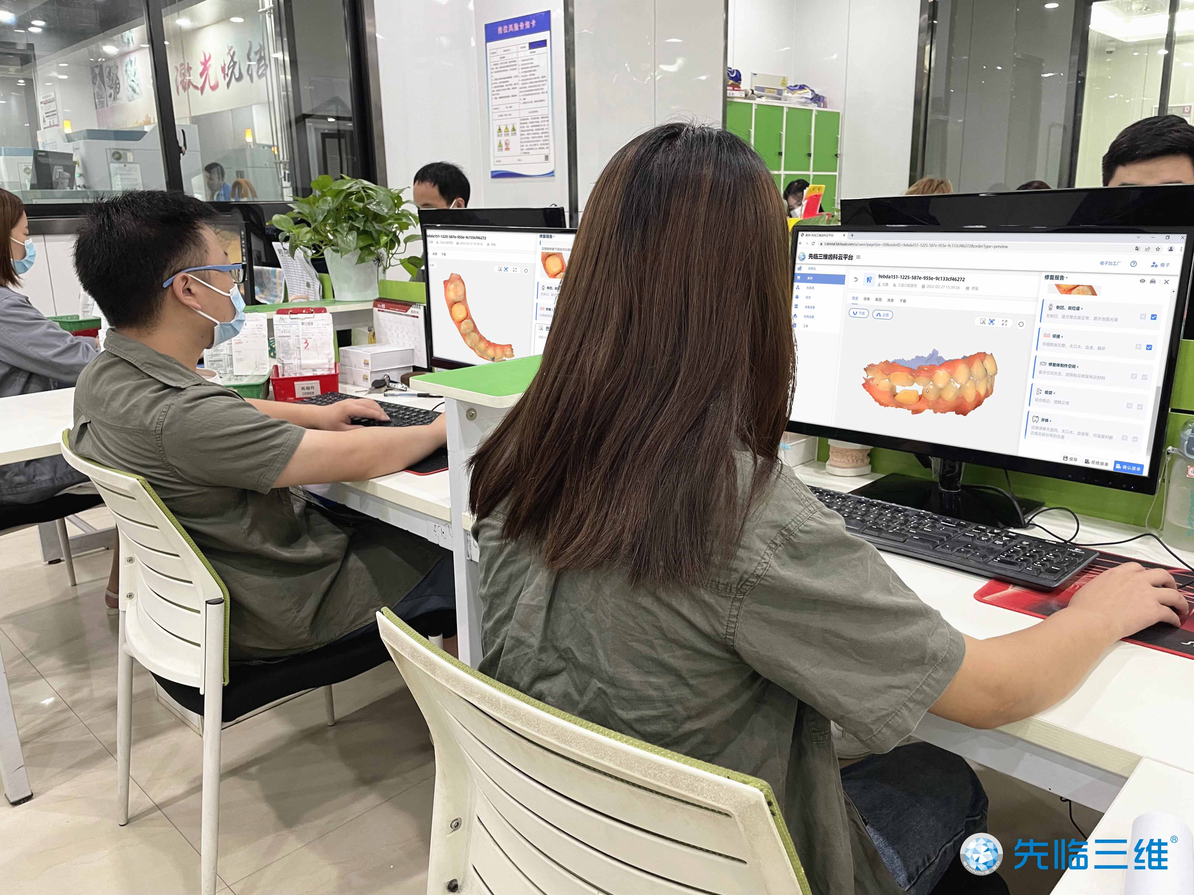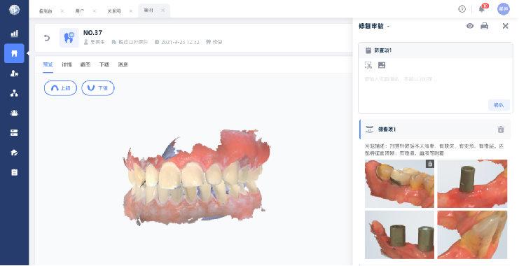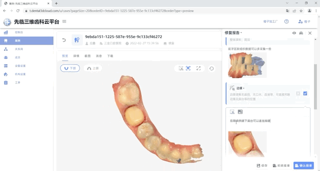 医生在诊所完成口内扫描后,一键上传云平台,加工厂客服可在线核查数字印模质量,